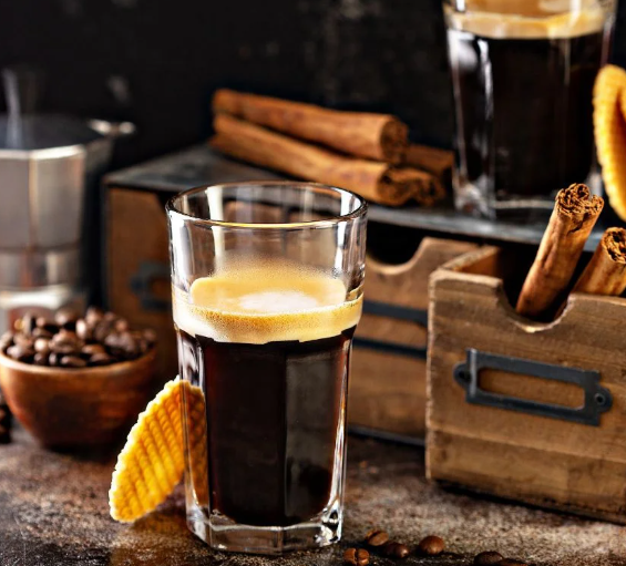A Café Americano is a simple yet refined coffee drink made by combining espresso shots with hot water.