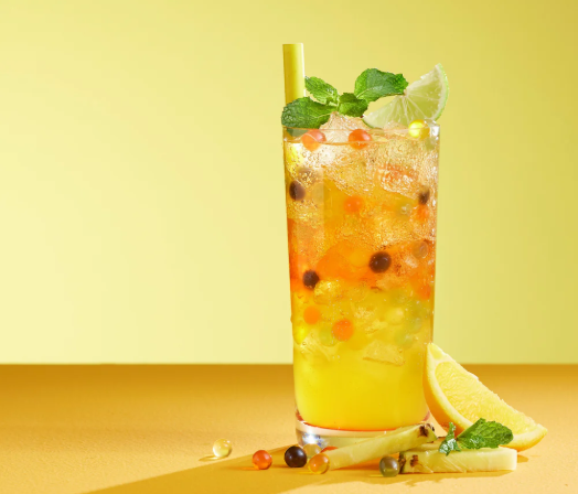 A tropical, thirst-quenching blend of zesty lemonade and sweet mango juice, served over ice and bursting with juicy strawberry popping boba. Bright, fruity, and refreshingly fun, this island-inspired drink delivers a perfect balance of tangy citrus and luscious tropical flavor in every sip.