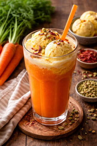 A rich and refreshing twist on a classic, this vibrant drink blends naturally sweet fresh carrot juice with a scoop of fragrant saffron (zafran) ice cream for a creamy, luxurious finish. Topped with crushed pistachios for a subtle crunch, it’s a beautifully balanced treat that’s both cooling and indulgent.